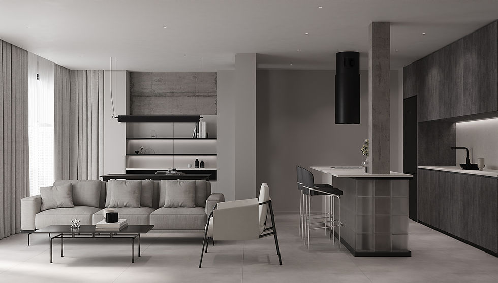 A refined interpretation of urban living, where raw industrial textures and a disciplined monochrome palette define a space of effortless, brutalist-inspired authority.